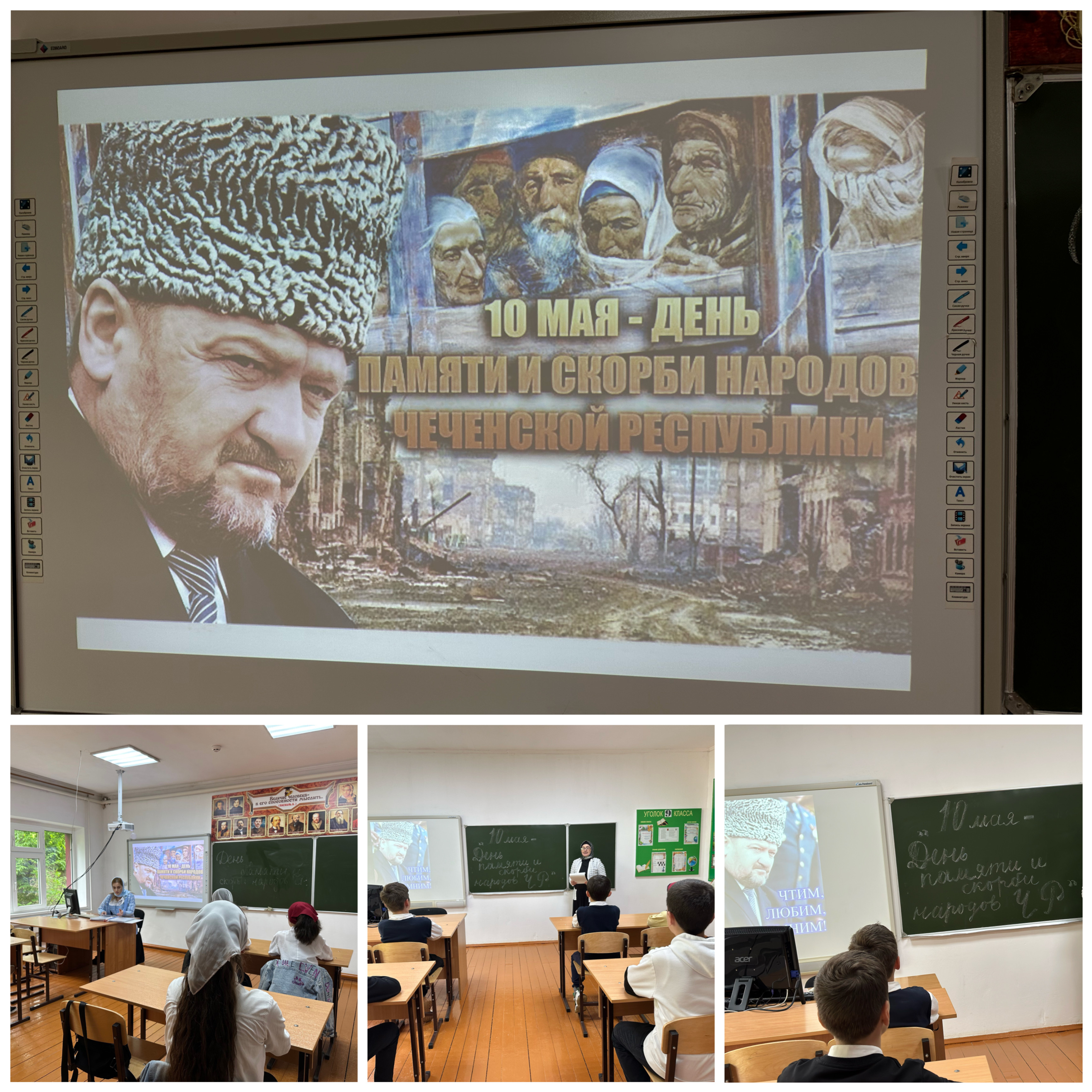 В ходе беседы педагоги рассказали обучающим о печальной дате – 10 мая. Этот день с 2011 года стал единым Днем памяти и скорби народов Чеченской Республики. Он символизирует все драматические события в истории чеченского народа: страшная трагедия 1944 года – всенародная депортация и десятки лет высылки, сожженный вместе с жителями Хайбах, разрушительная военная кампания 90-х годов, гибель мирных жителей.